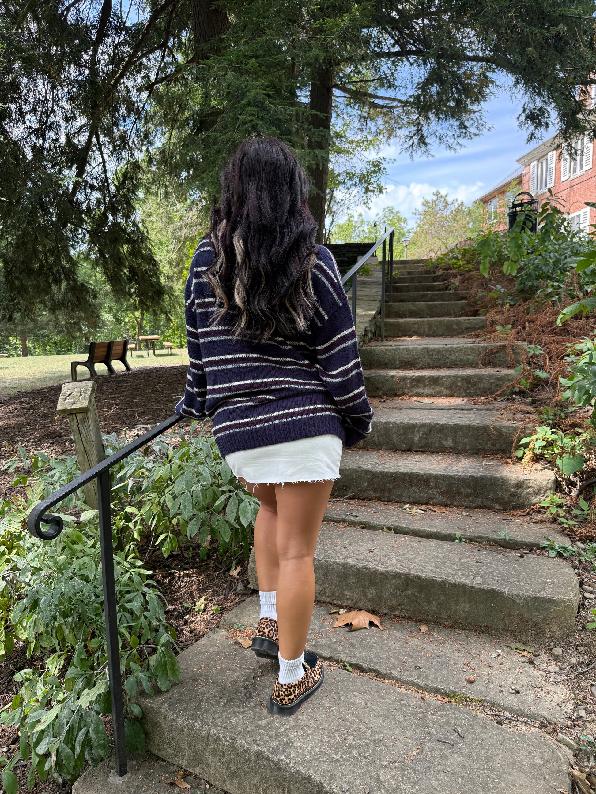 Introducing our Copper Collar Sweater in Midnight! This cozy and stylish sweater features a mix of navy, brown, and cream colors, making it a versatile piece for your Fall wardrobe. With a cute collar detail and comfortable fit, it's the perfect addition to any outfit. Stay warm and fashionable this season.