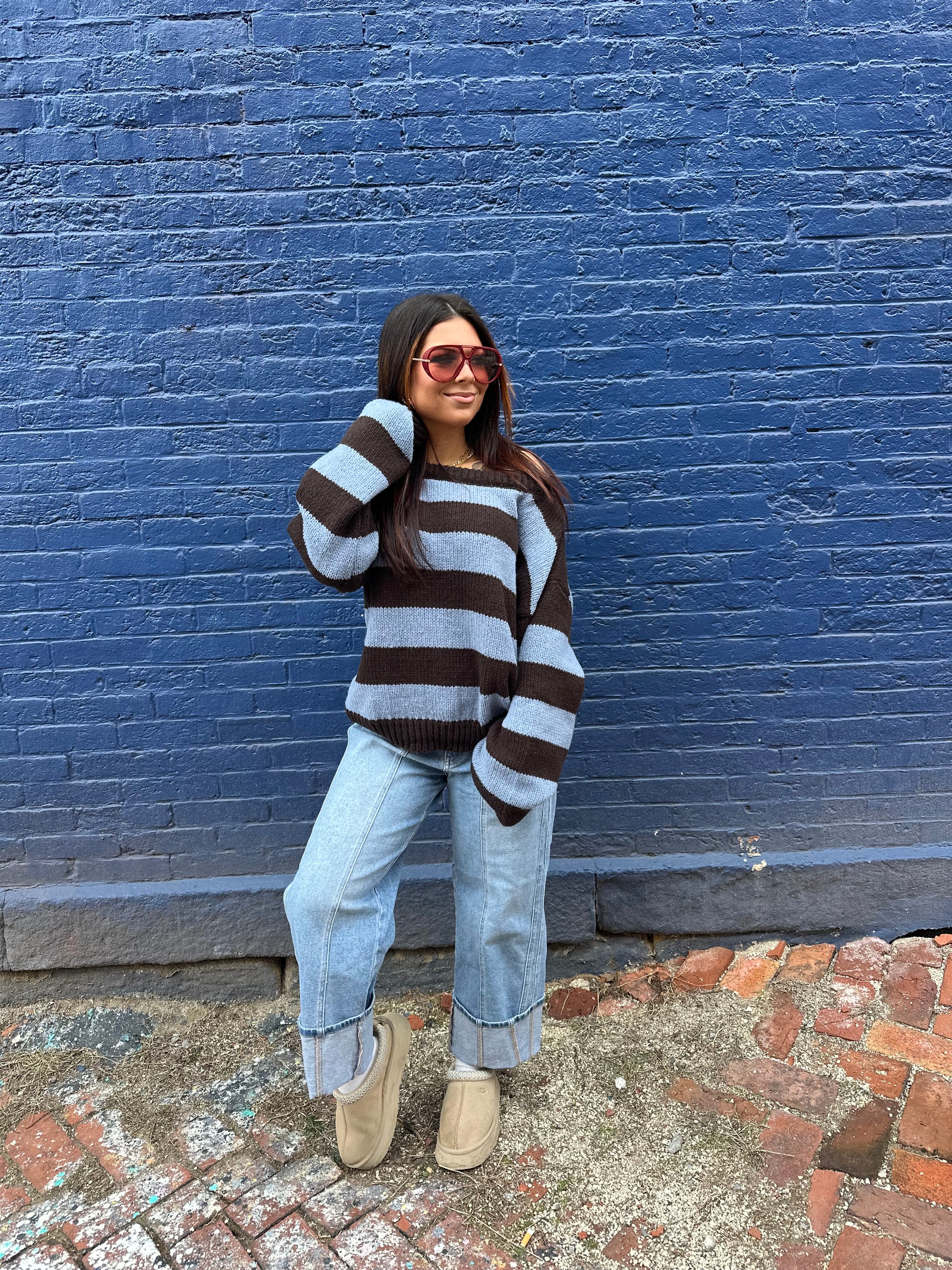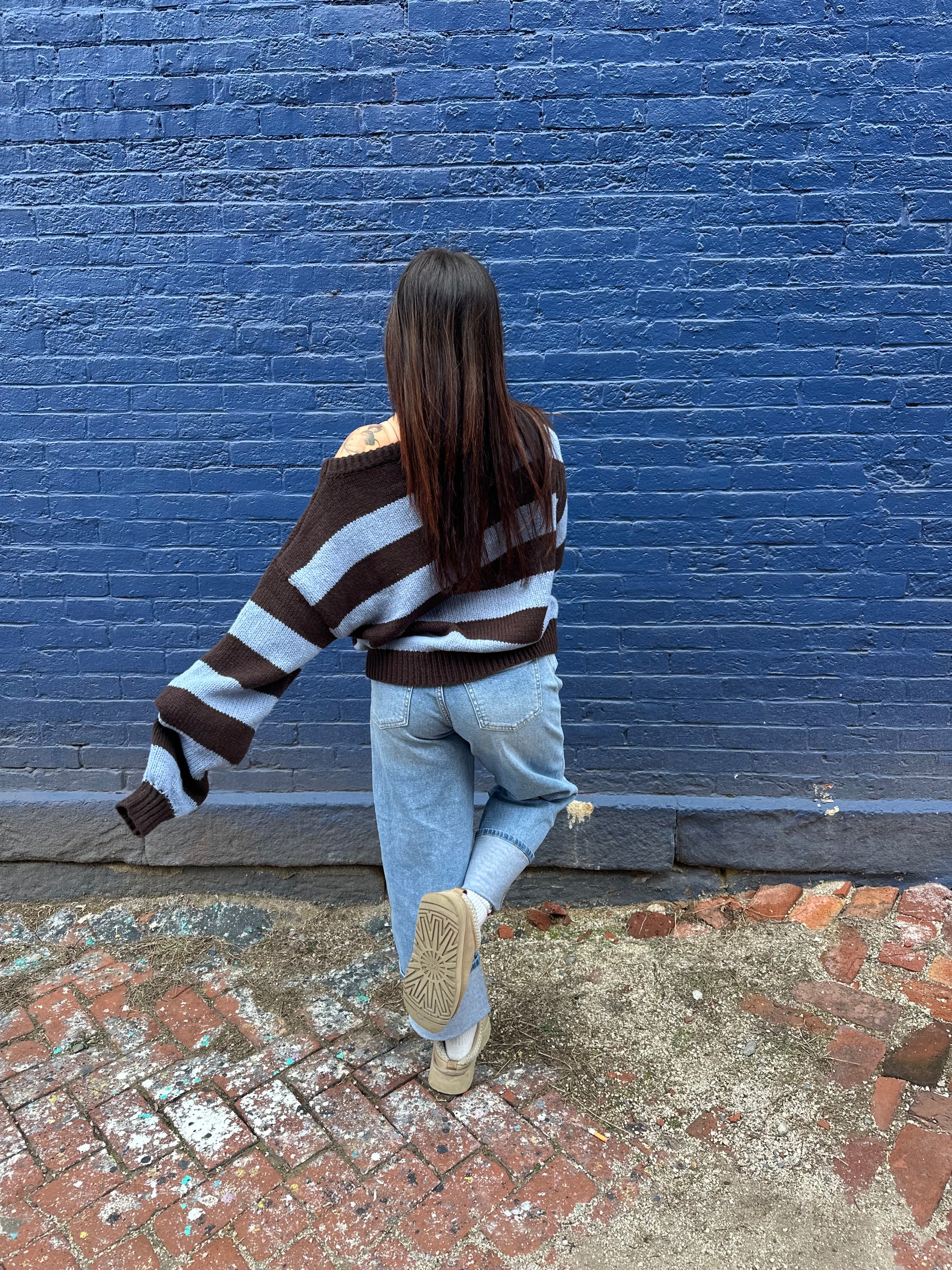 Dixie One Shoulder Sweater in Blue/Brown