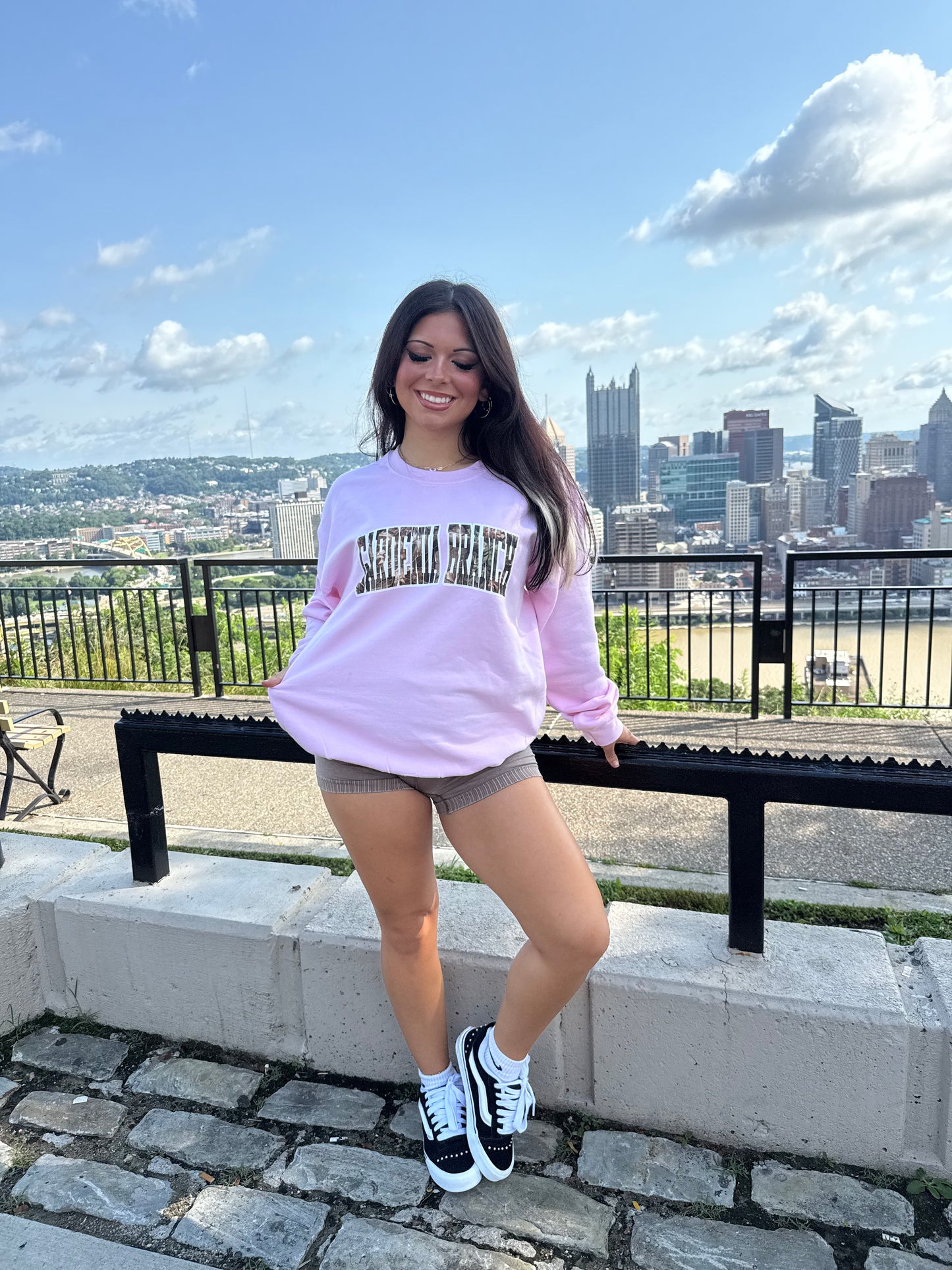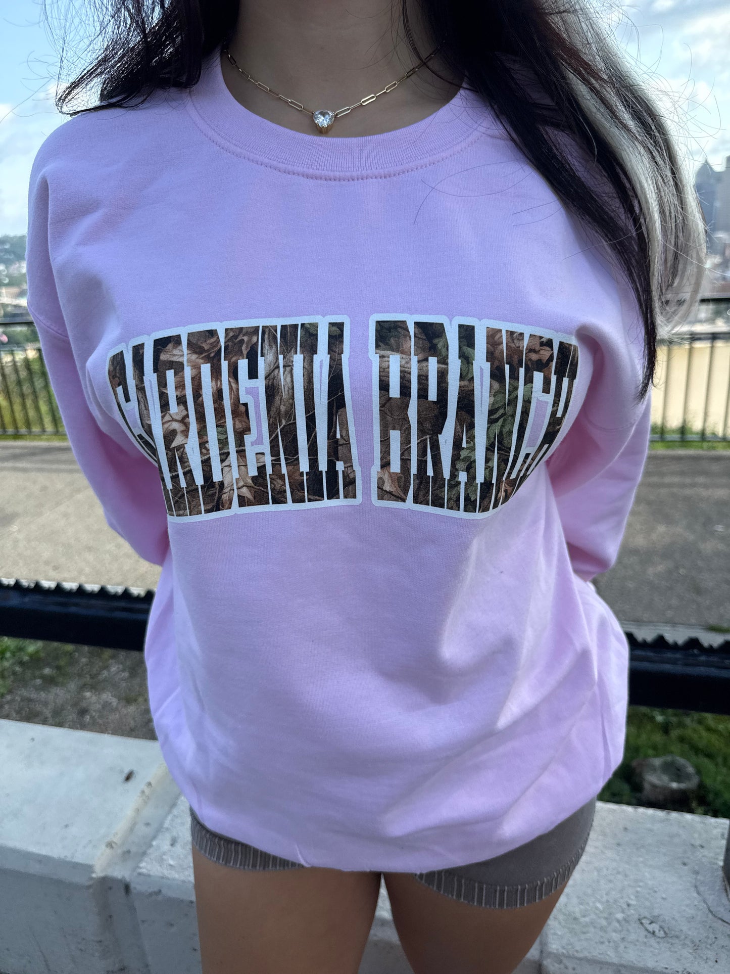 Introducing our Gardenia Branch Woodsy Crewneck - a pink and cozy must-have. This crewneck is adorned with a delicate gardenia branch print and finished with a soft cotton blend for ultimate comfort. Perfect for the camo-loving fashionistas looking to add a touch of whimsy to their wardrobe.x