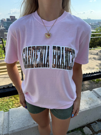 Get into the garden spirit with our Gardenia Branch Woodsy Tee! Made of soft fabric and featuring a pink camo print, this tee is perfect for the nature-lover in you. With a subtle gardenia branch design, it's a unique and playful addition to your wardrobe. Get yours now!