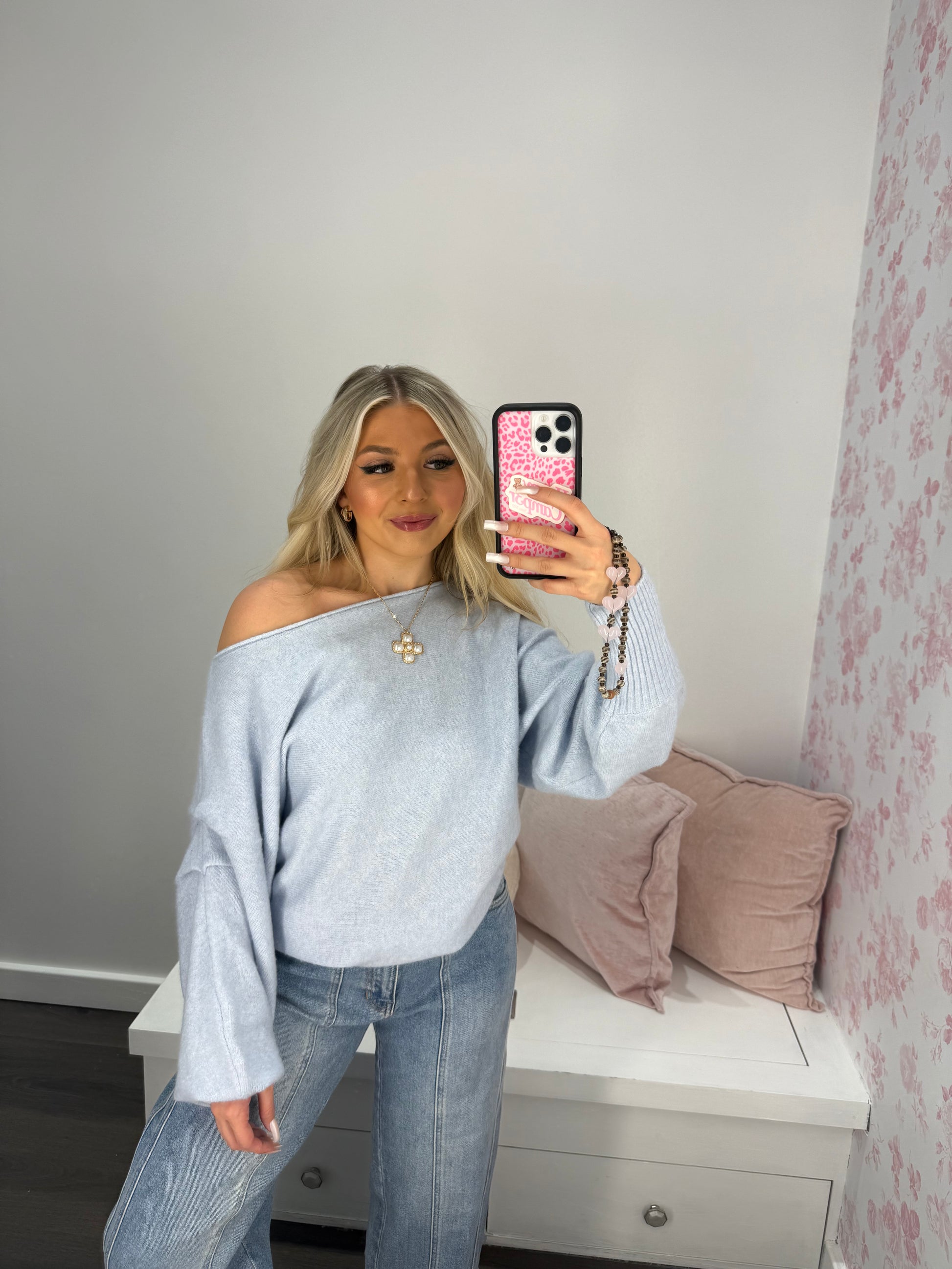"Wrap yourself in cozy cuteness with our Gloomy Blue One Shoulder Sweater! Made from fuzzy fabric, this off-shoulder sweater in a gentle baby blue tone will keep you warm and stylish. Perfect for days when you want to feel comfy and cute."
