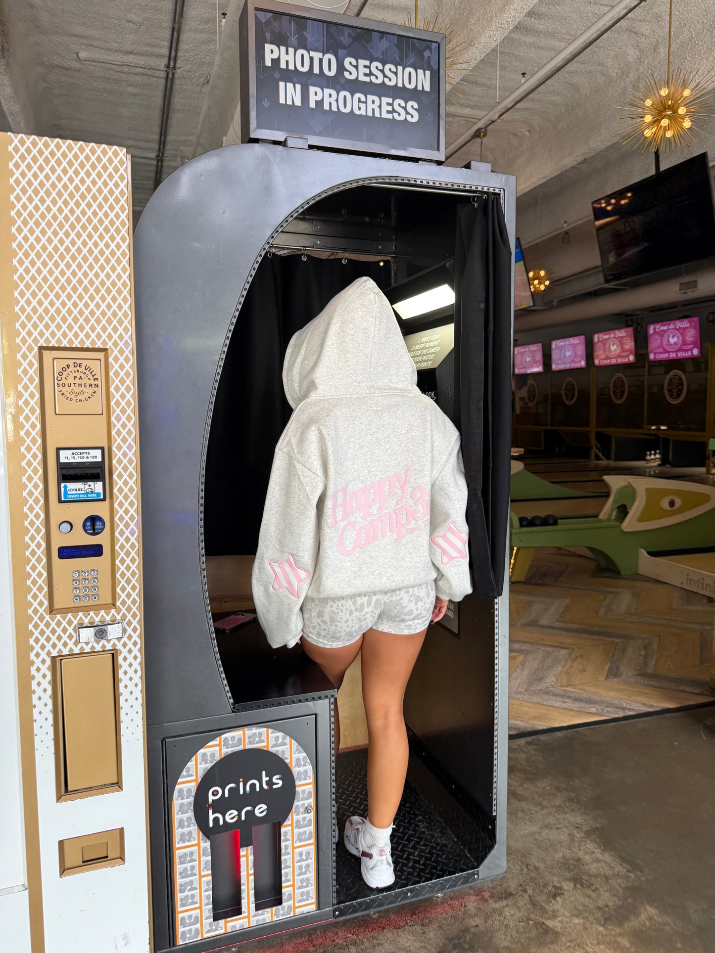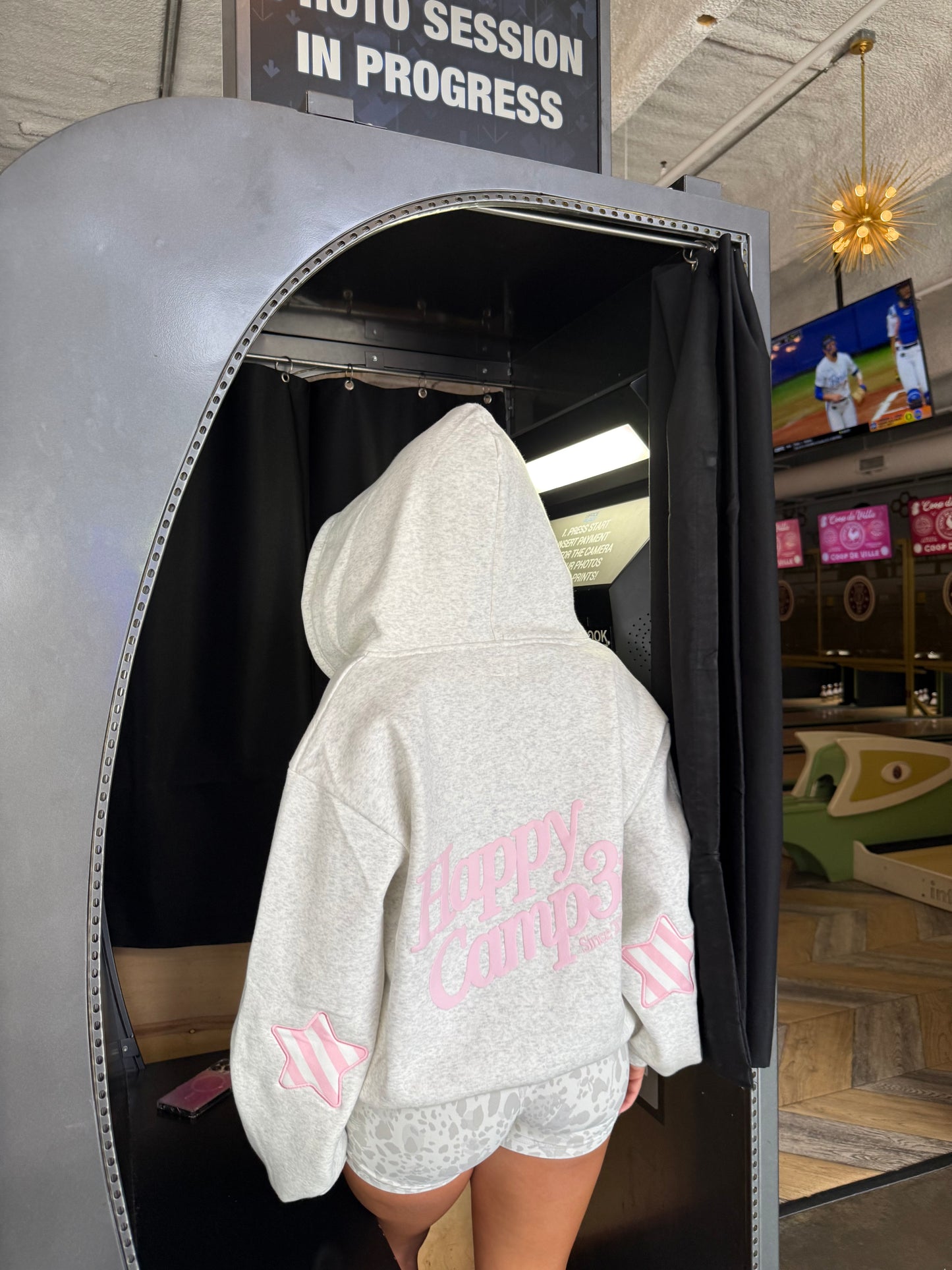 Introducing the Happy Camp3r Cotton Candy Zip-Up. With a plush pink interior and heather gray exterior, this zip-up is as soft as it is cozy. Perfect for camping or any adventure, you'll always feel warm and stylish. Get your hands on this unique piece today!