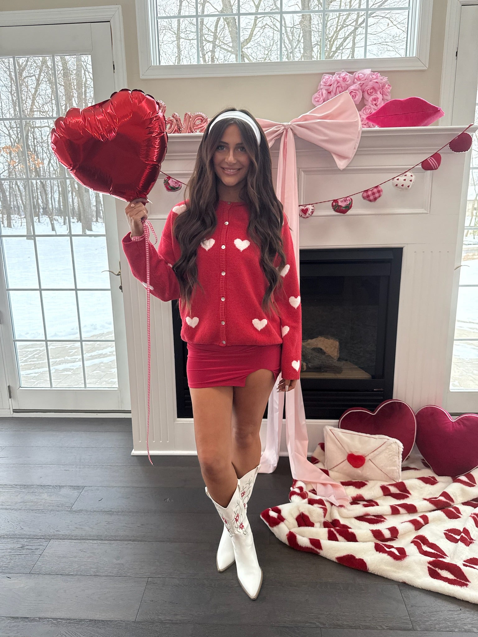 Midi Slit Skirt in Red