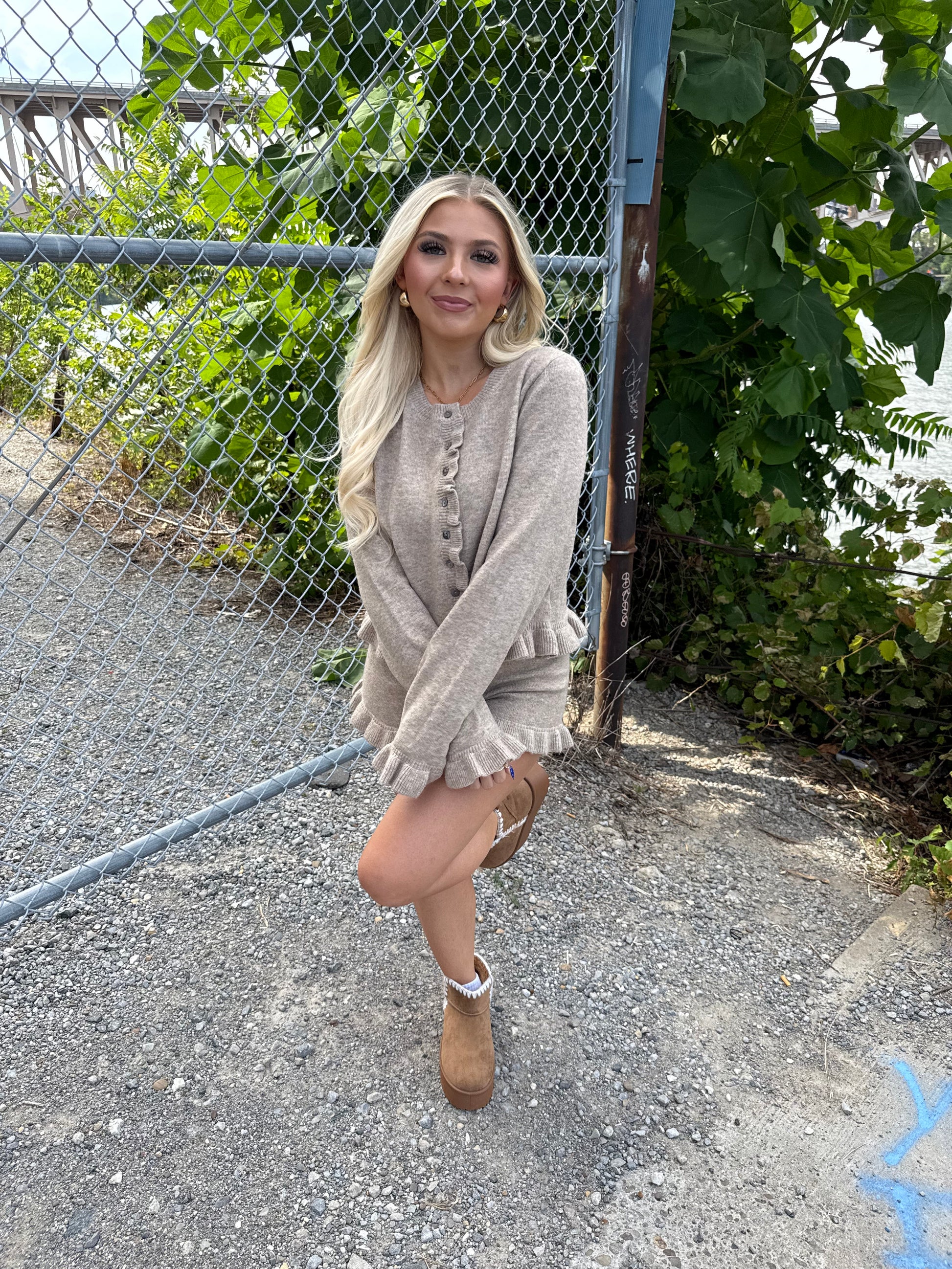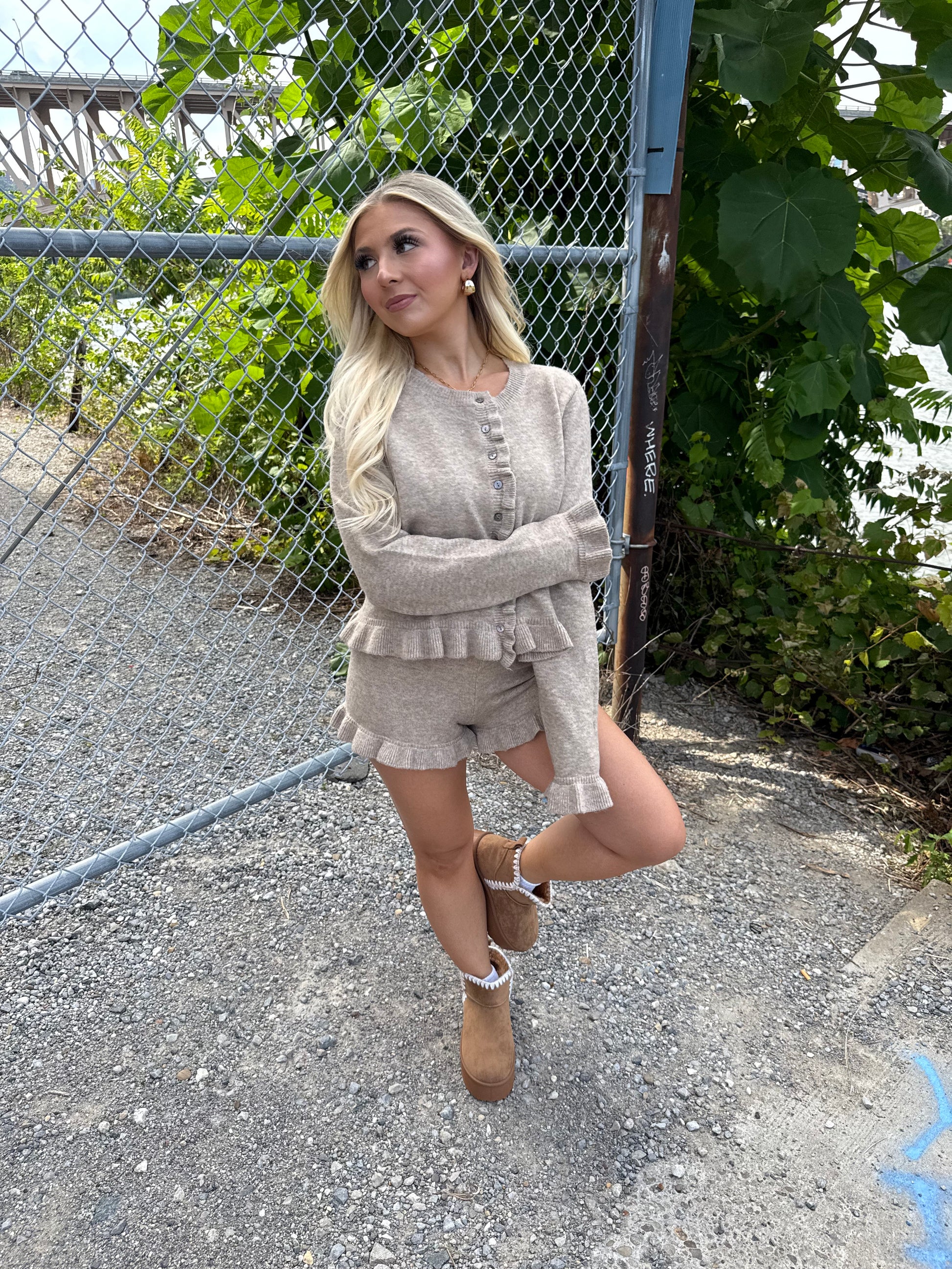 The Moco Ruffle Shorts provide both comfort and style with their soft fabric and stretchy waistband. The ruffle detailing adds a touch of charm, making them a perfect addition to your fall wardrobe. To complete the matching look, pair these shorts with our Moco Ruffle Set Top (sold separately).