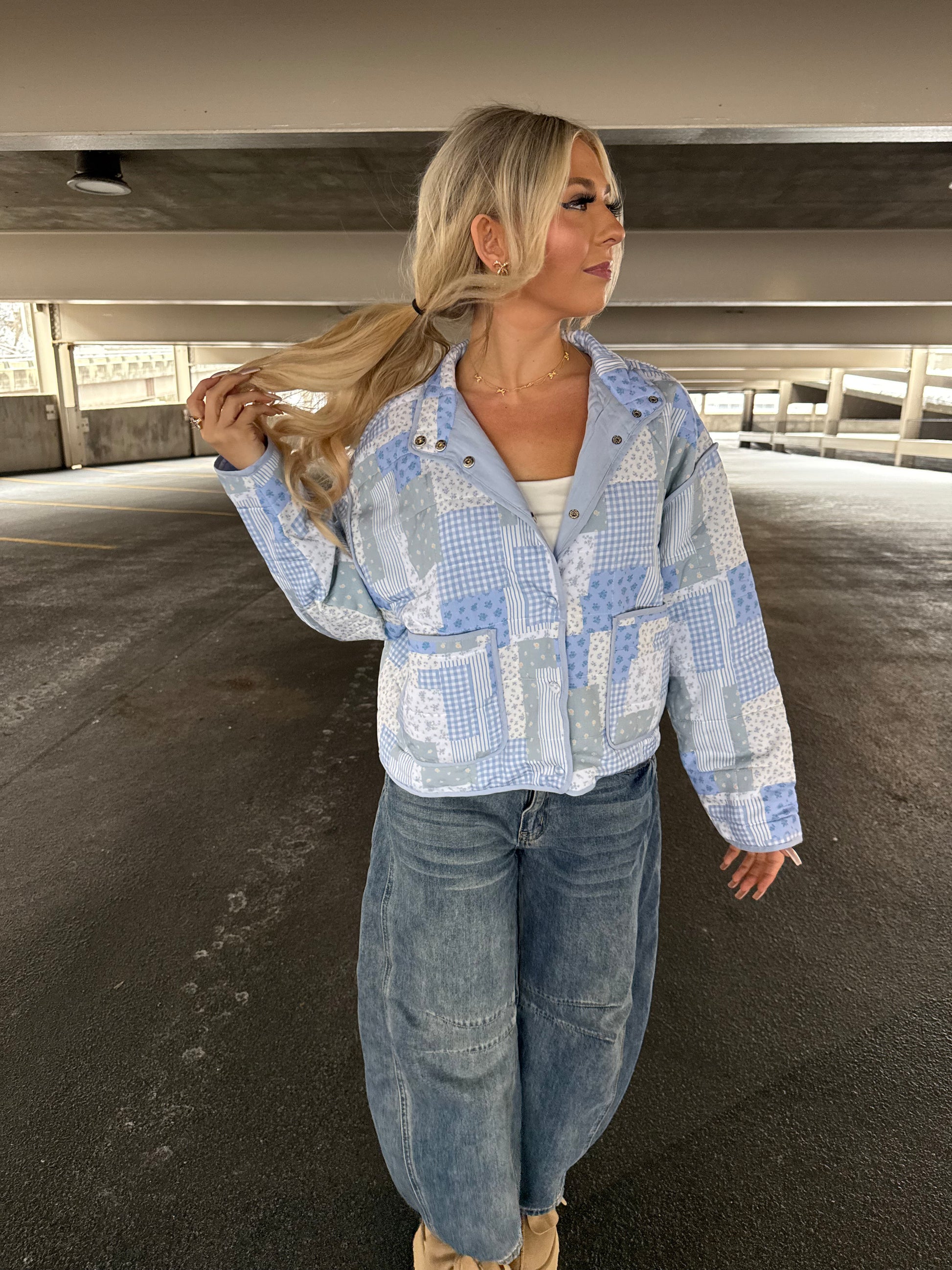 Stay warm and stylish with our Patchwork Blues Puffer. This button-up jacket features a unique patchwork design, making it a one-of-a-kind piece. Stay cozy in the cooler weather with this warm and fashion-forward choice.
