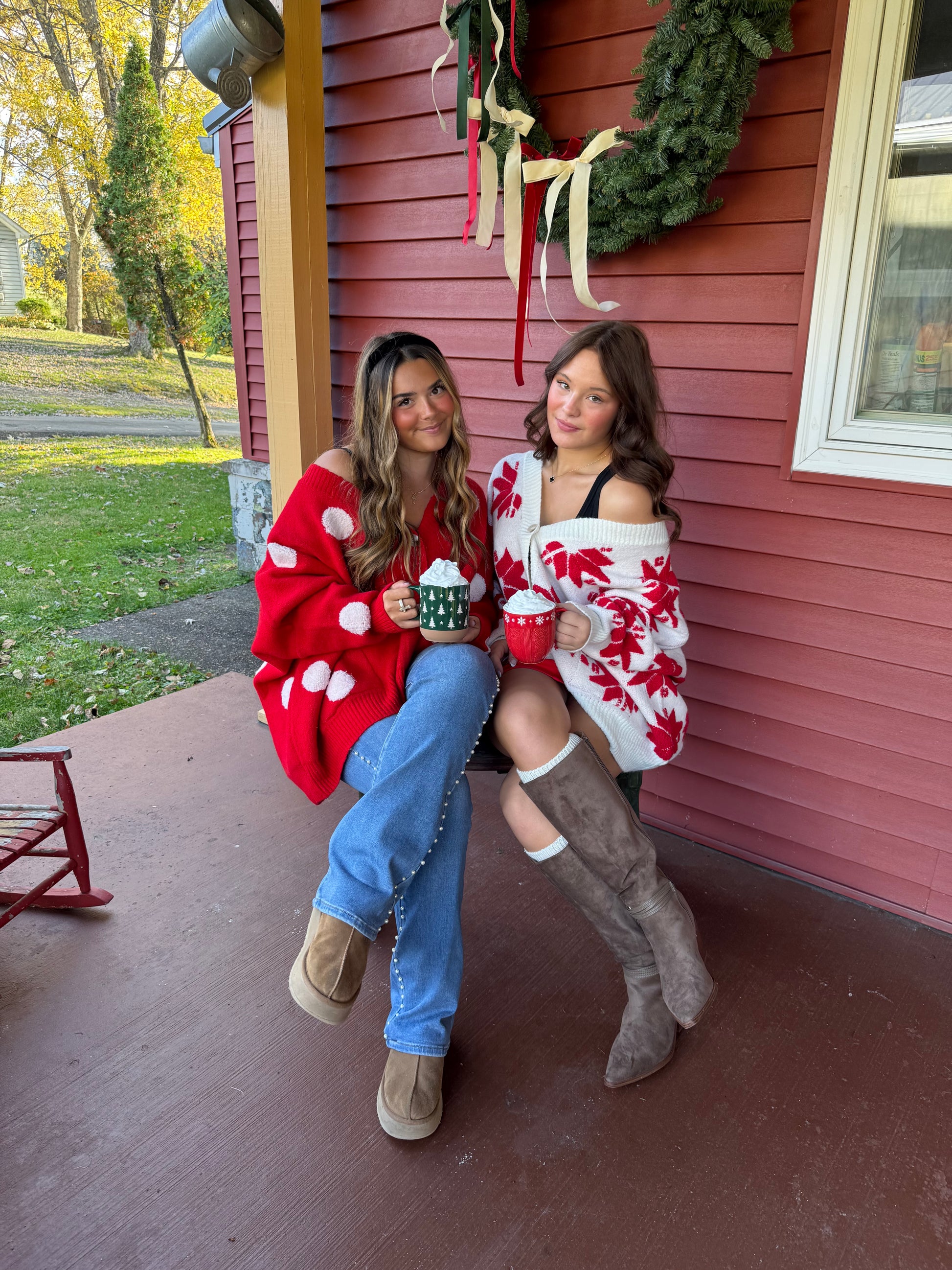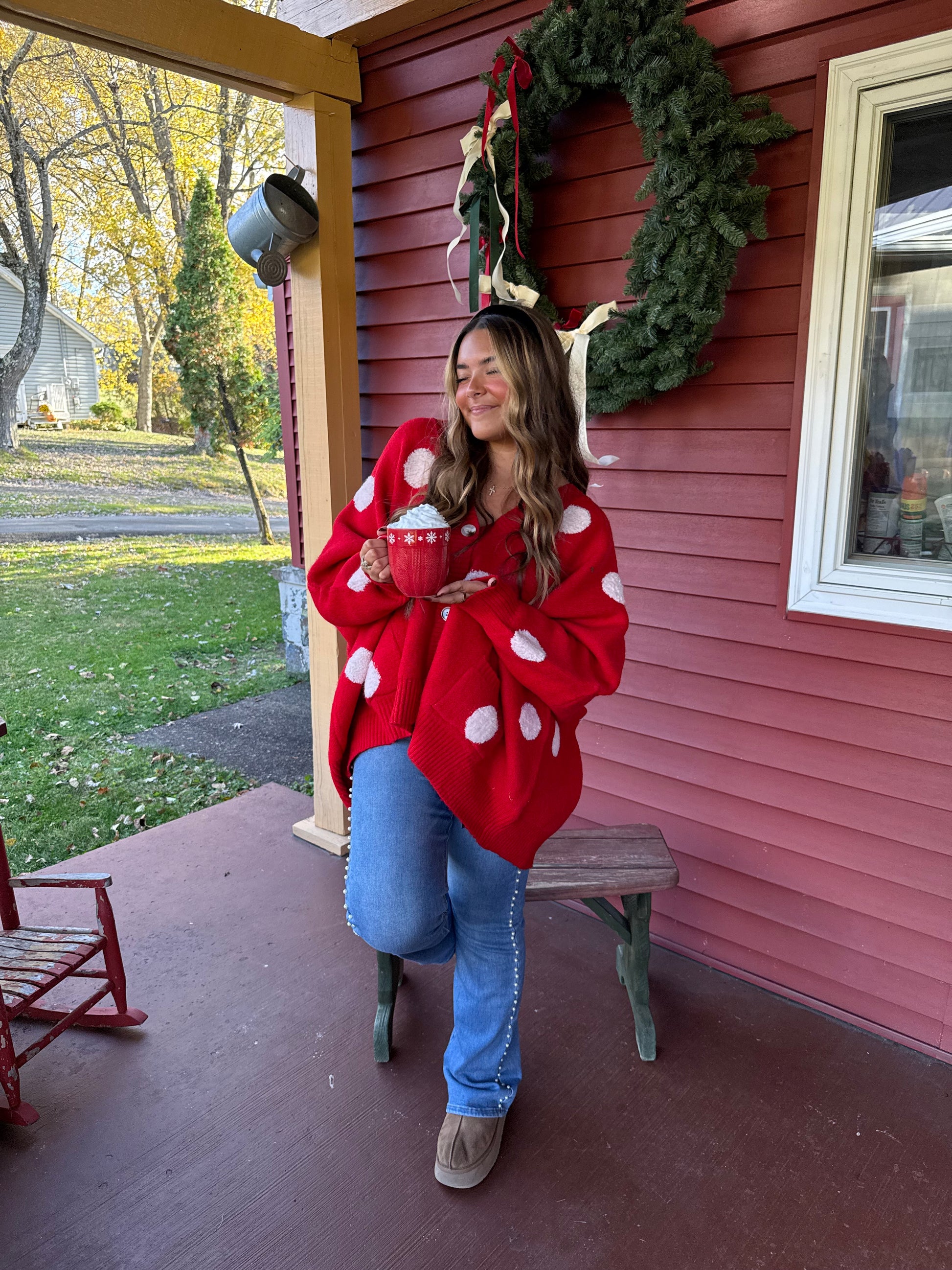 Get ready to spice up your wardrobe with our Perfectly Oversized Polka Cardi! This bright red, button-up cardi will make a statement wherever you go. Don't be afraid to stand out in the unique large polka dot pattern, this piece is perfect for those who dare to be bold!