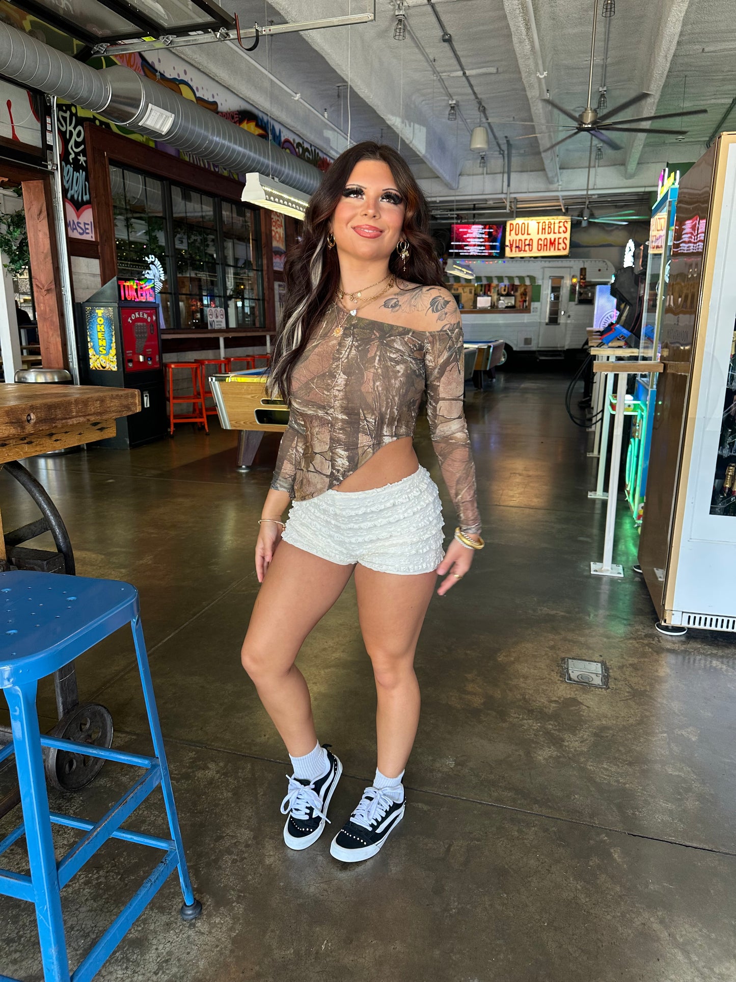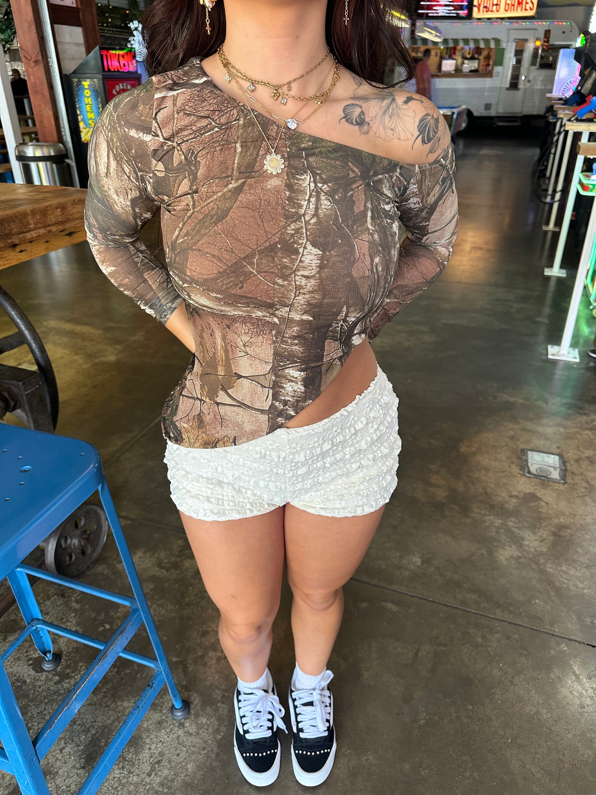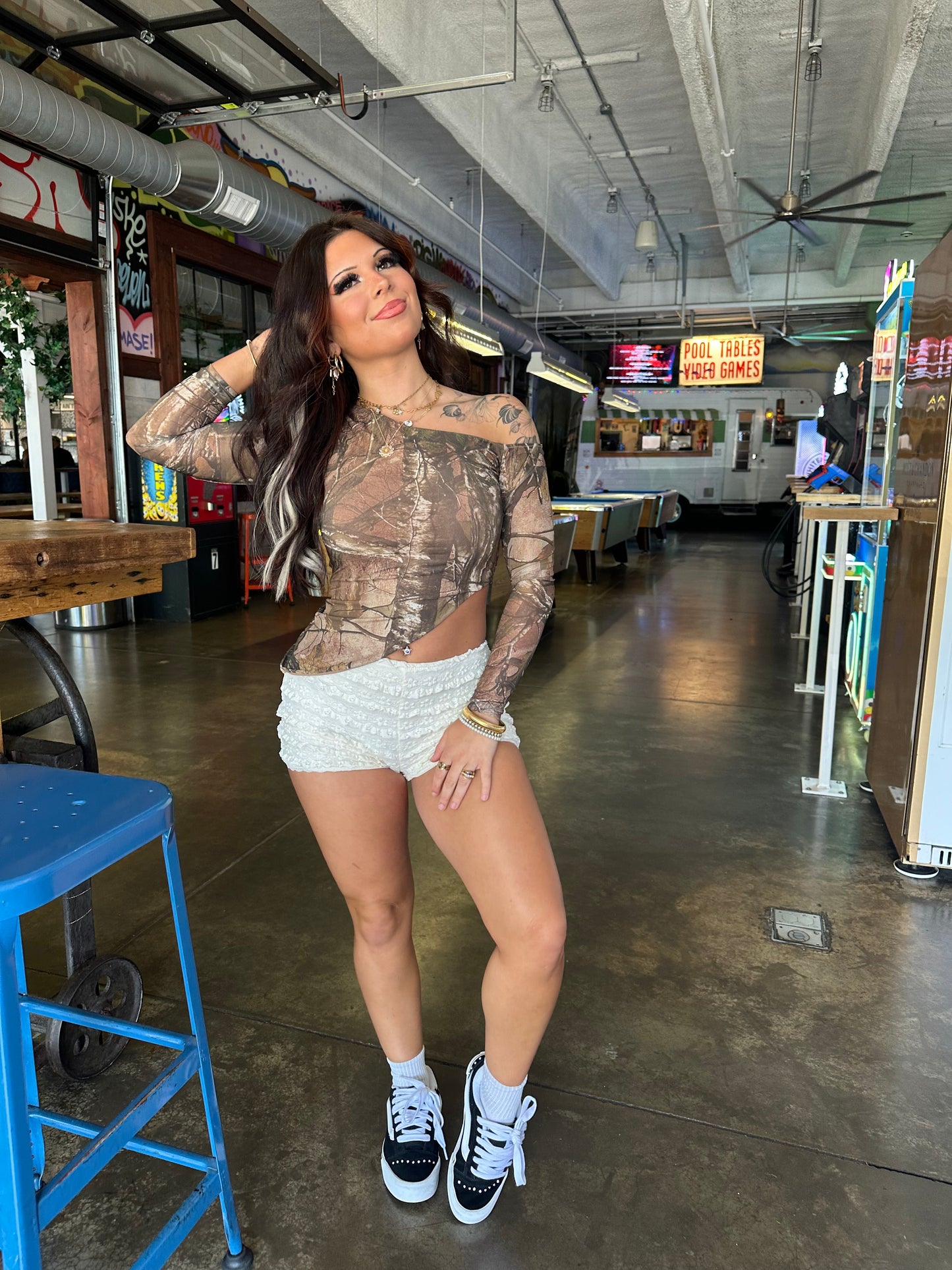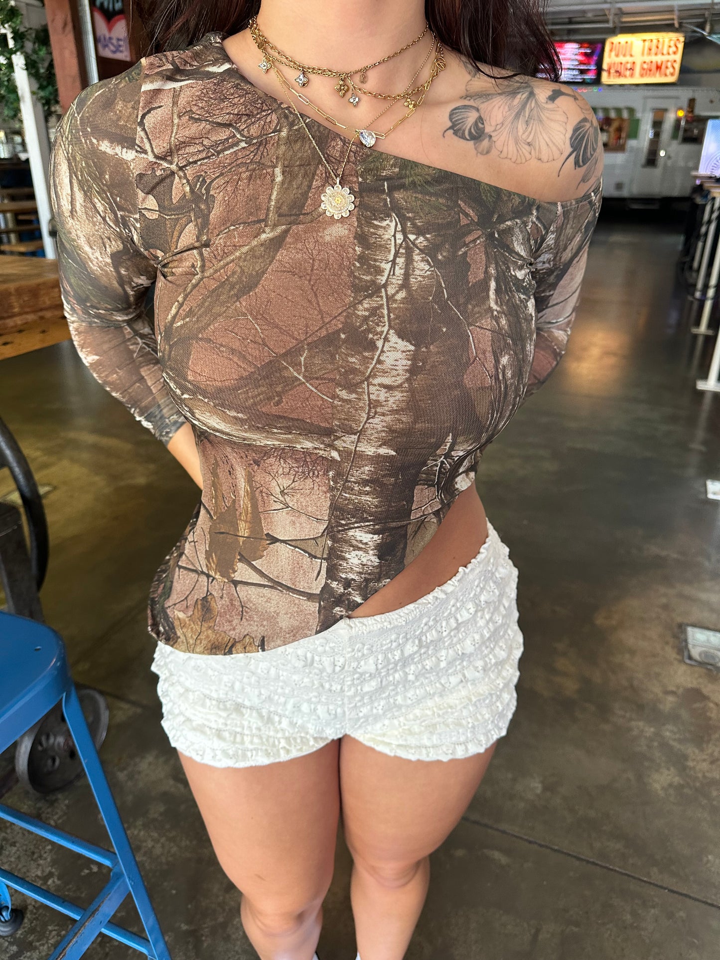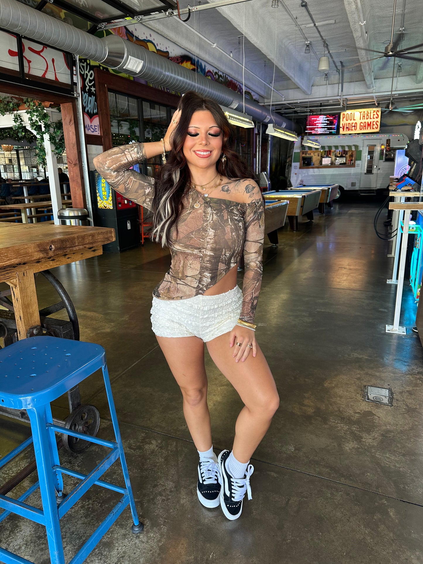 Experience the playful side of fashion with the Wheat Fields L/S - a brown camo long sleeve top that is stretchy and soft for all-day comfort. Make a statement without sacrificing comfort.